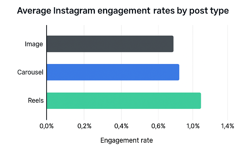 Average Instagram engagement rates by post type (image, carousel, Reels)